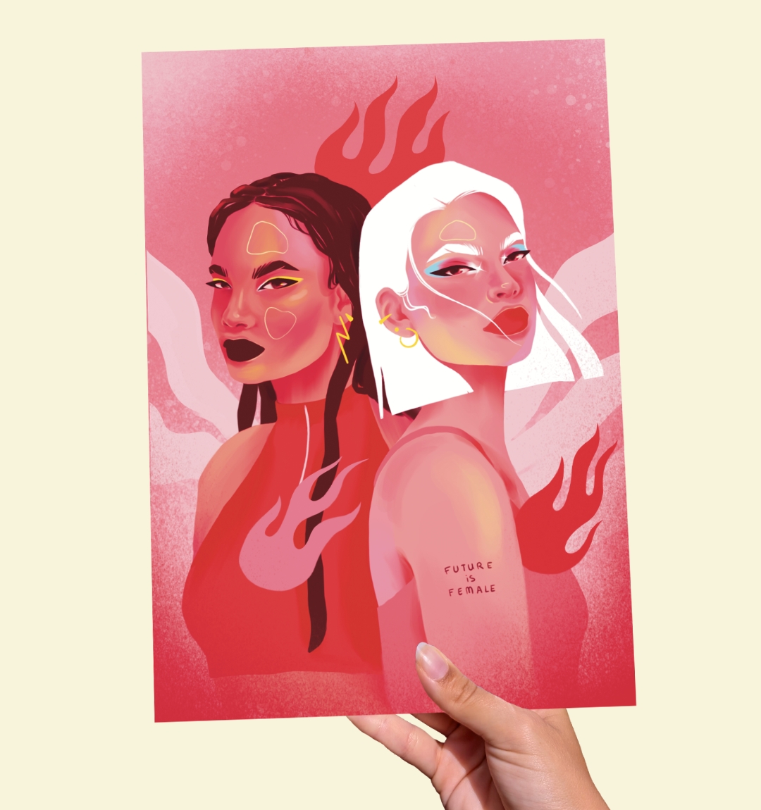 Print « Future is Female », disponible au format A5, A4 et A5. Réalisée à l’occasion du 8 mars 2025 pour communiquer sur la Journée Internationale des Droits des Femmes, cette affiche illustre les luttes féministes et la puissance au féminin.